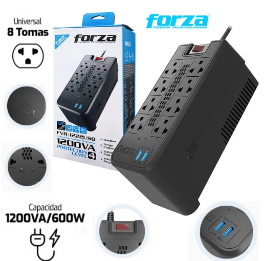 ESTABILIZADOR 8 TOMAS FVR-1222USB 1200VA – 2 USB